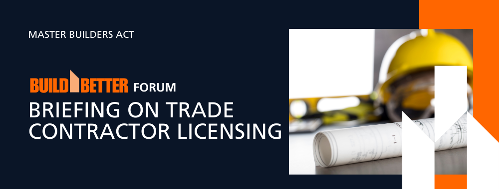 Join James Bennett, Executive Branch Manager for Building, Design and Projects in the City and Environment Directorate, as he presents a detailed overview of the ACT Government’s proposed licensing framework for trade contractors. This session will explore what the changes mean for your business and workforce, with additional insights from Nick Lhuede, ACT Construction Occupations Registrar and the Master Builders ACT Advisory Team.